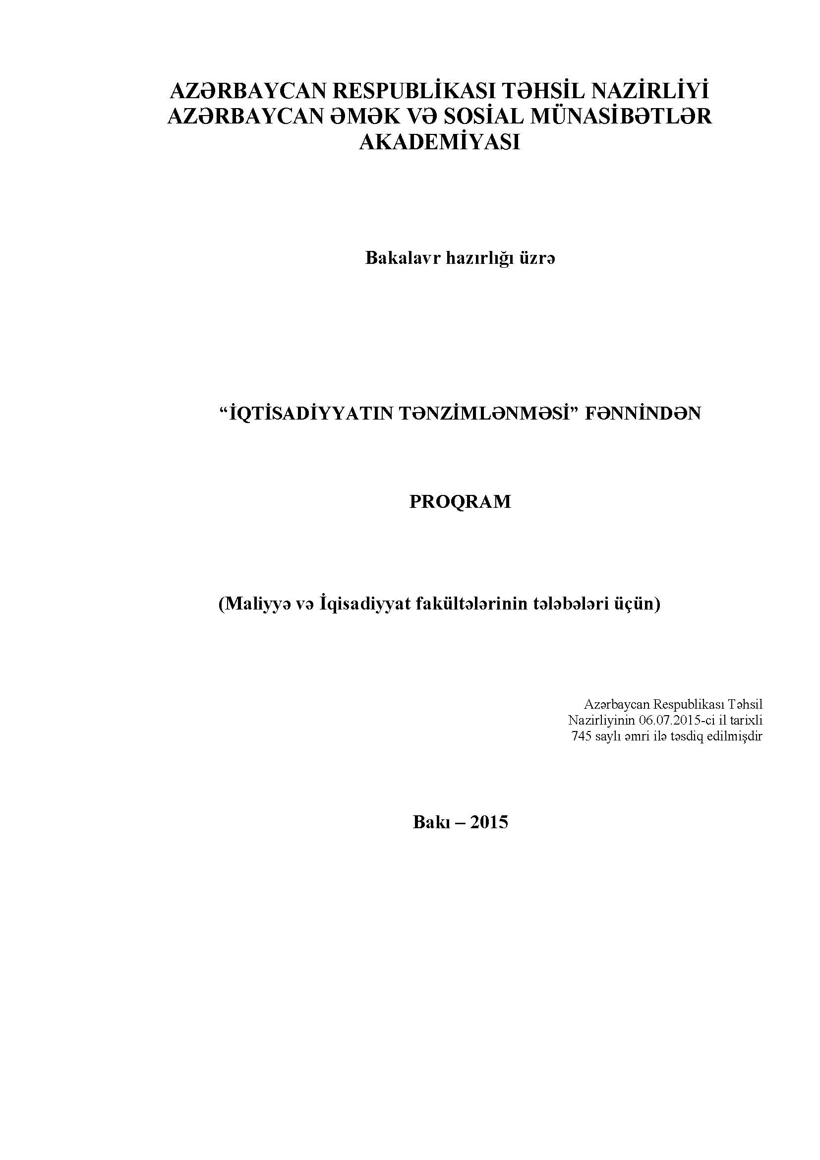 İQTİSADİYYATIN TƏNZİMLƏNMƏSİ