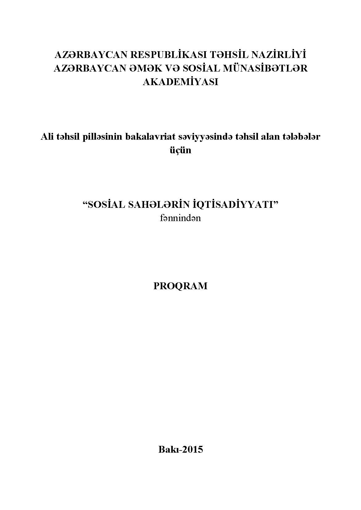 SOSİAL SAHƏLƏRİN İQTİSADİYYATI