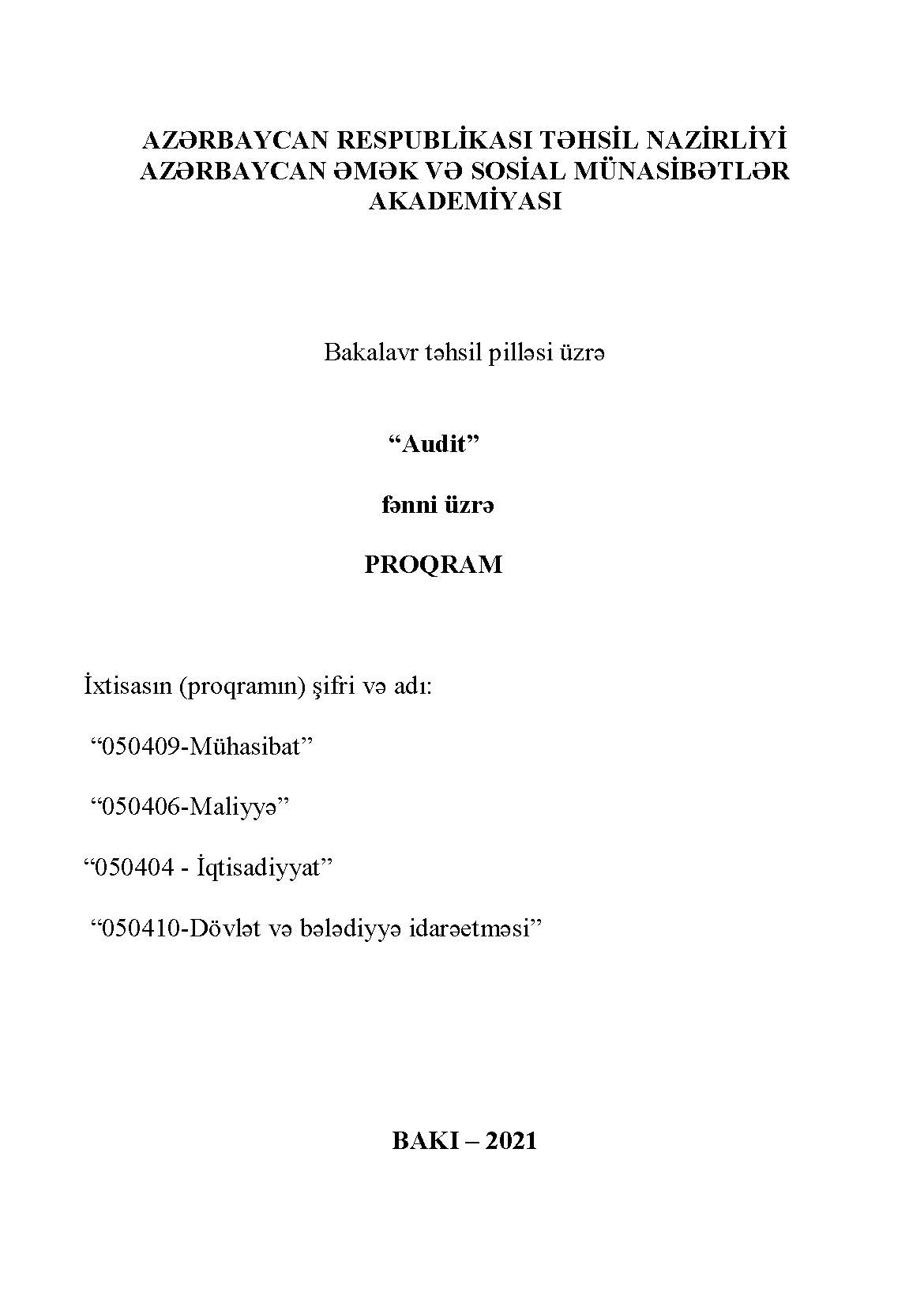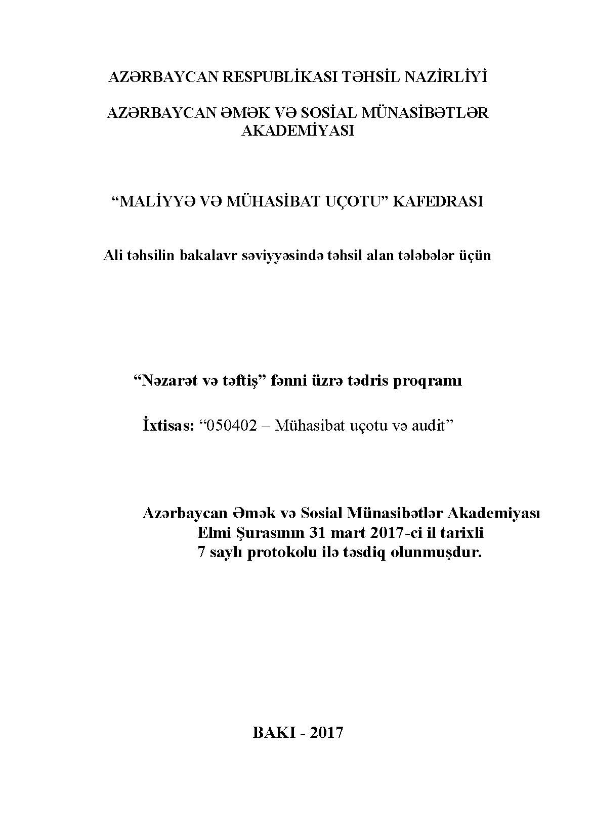 Maliyyə nəzarəti və audit