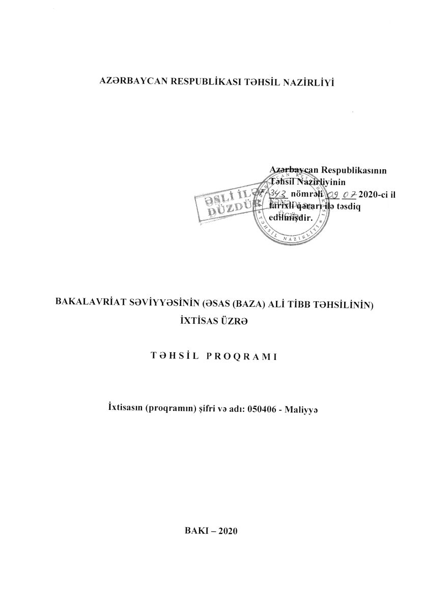 Bakalavriat səviyyəsinin ( (əsas) baza ali tibb təhsilinin ) ixtisas üzrə