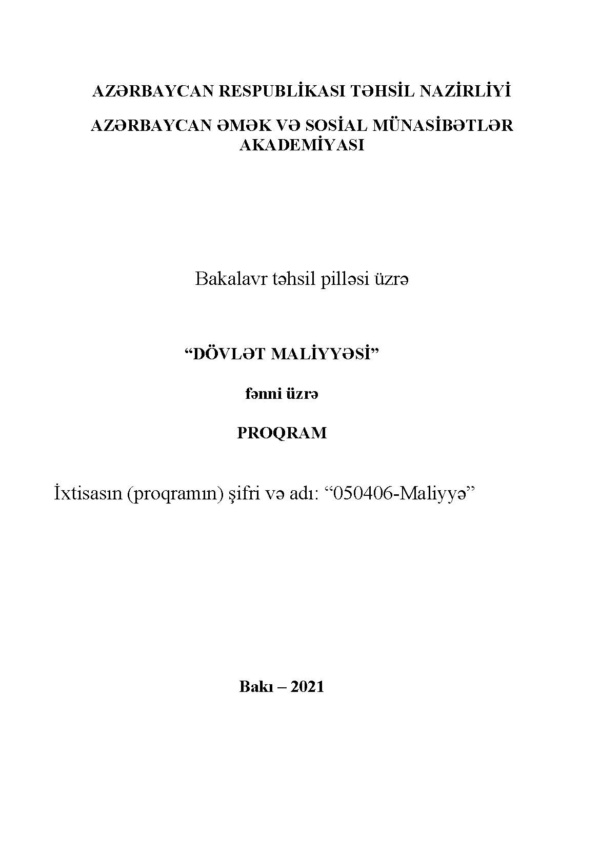 DÖVLƏT MALİYYƏSİ