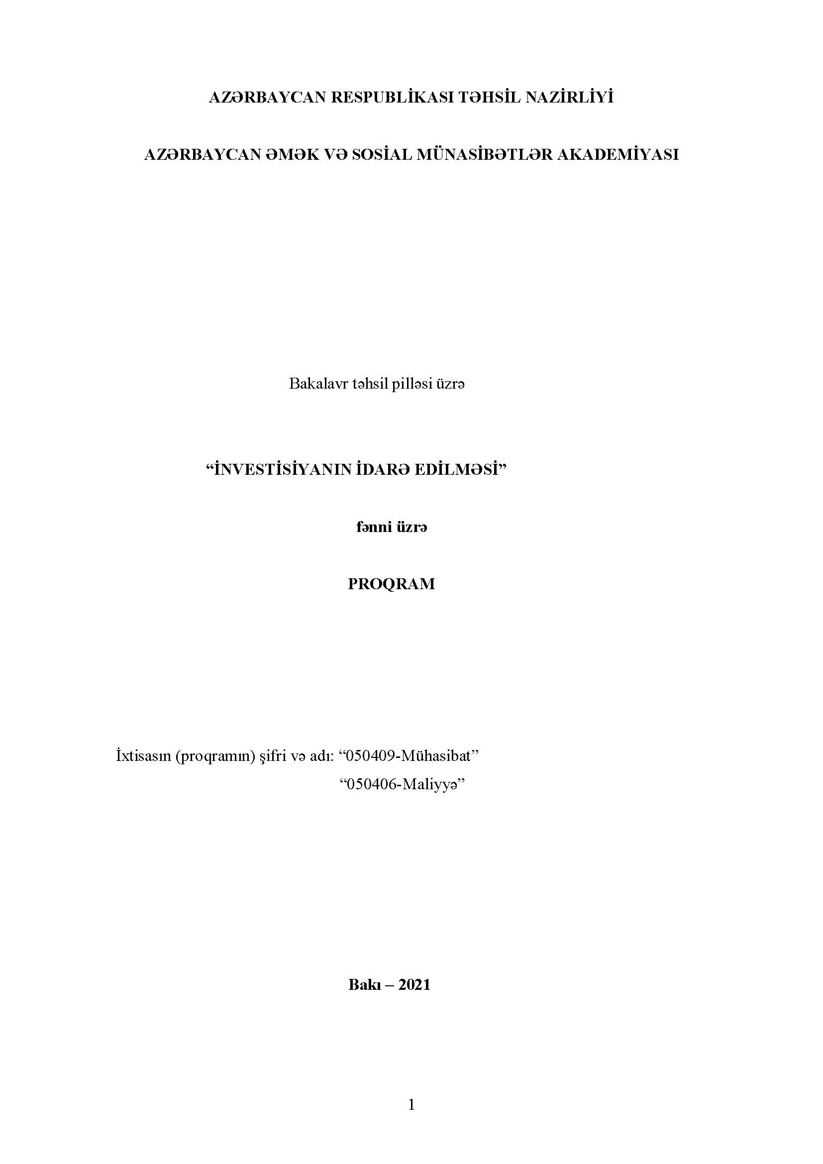 İNVESTİSİYANIN İDARƏ EDİLMƏSİ