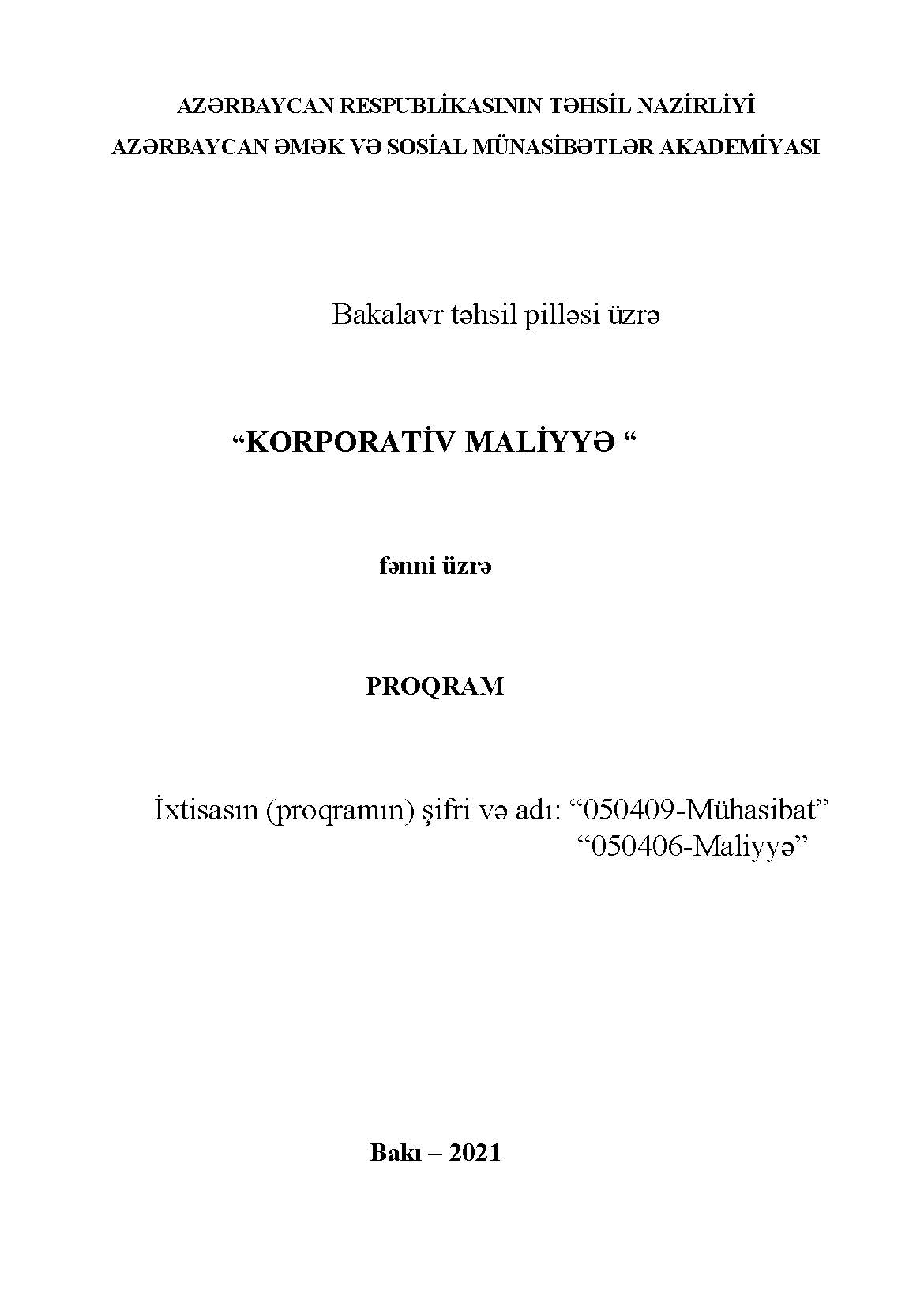 KORPORATİV MALİYYƏ