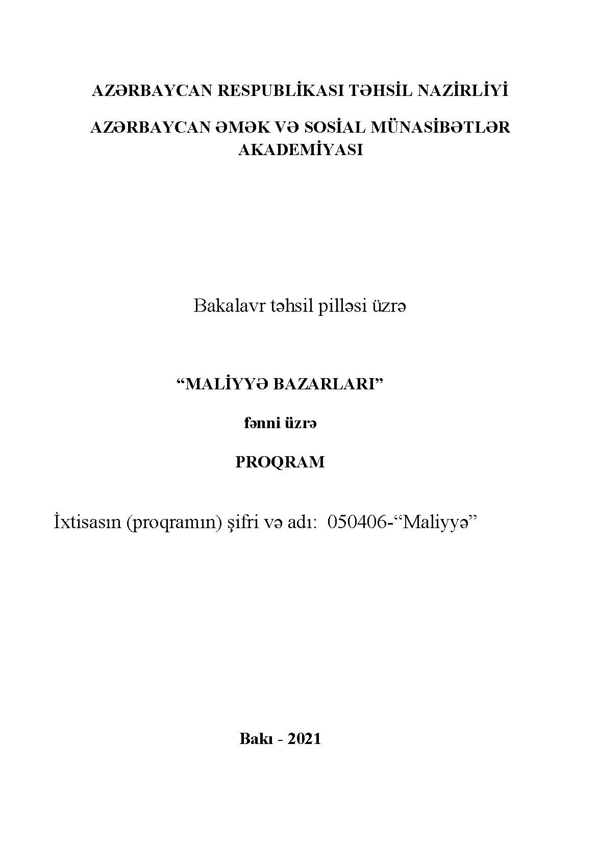 MALİYYƏ BAZARLARI