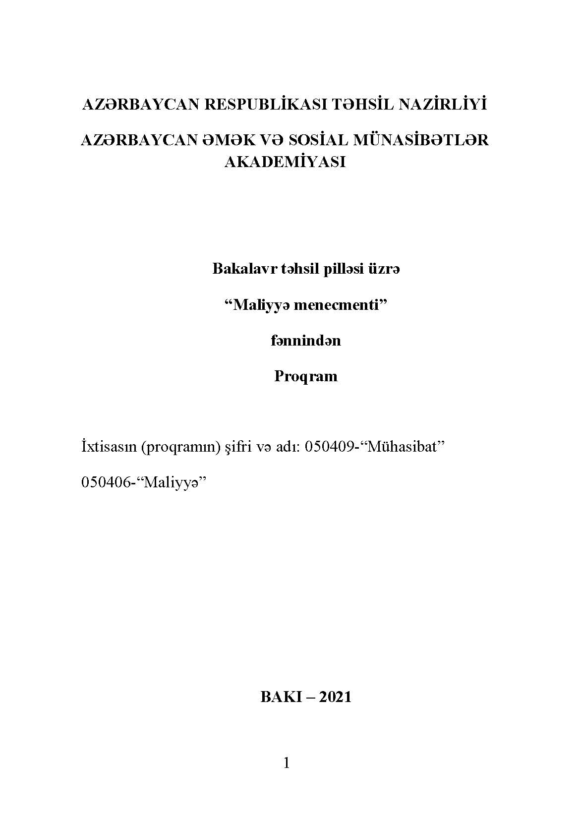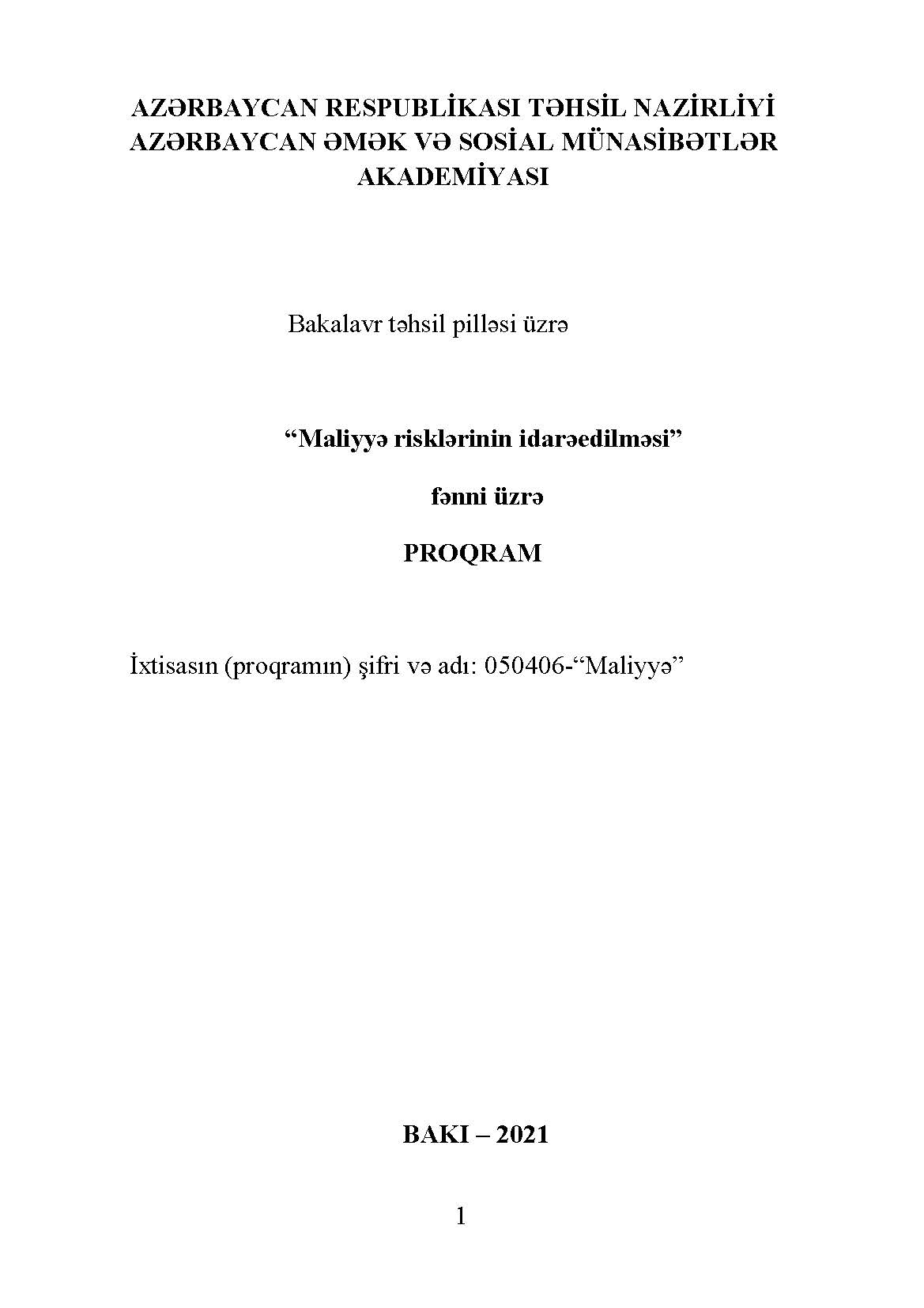 Maliyyə risklərinin idarəedilməsi