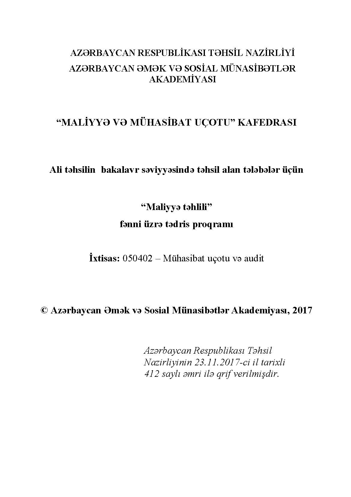 Maliyyə hesabatlarının təhlili
