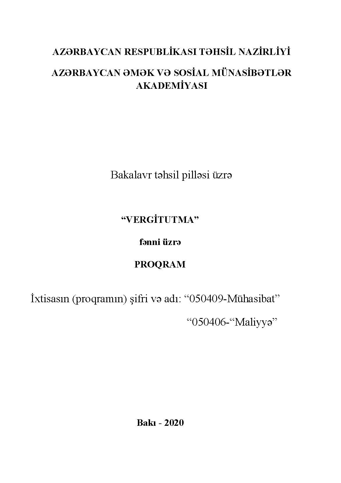 VERGİLƏR VƏ VERGİTUTMA