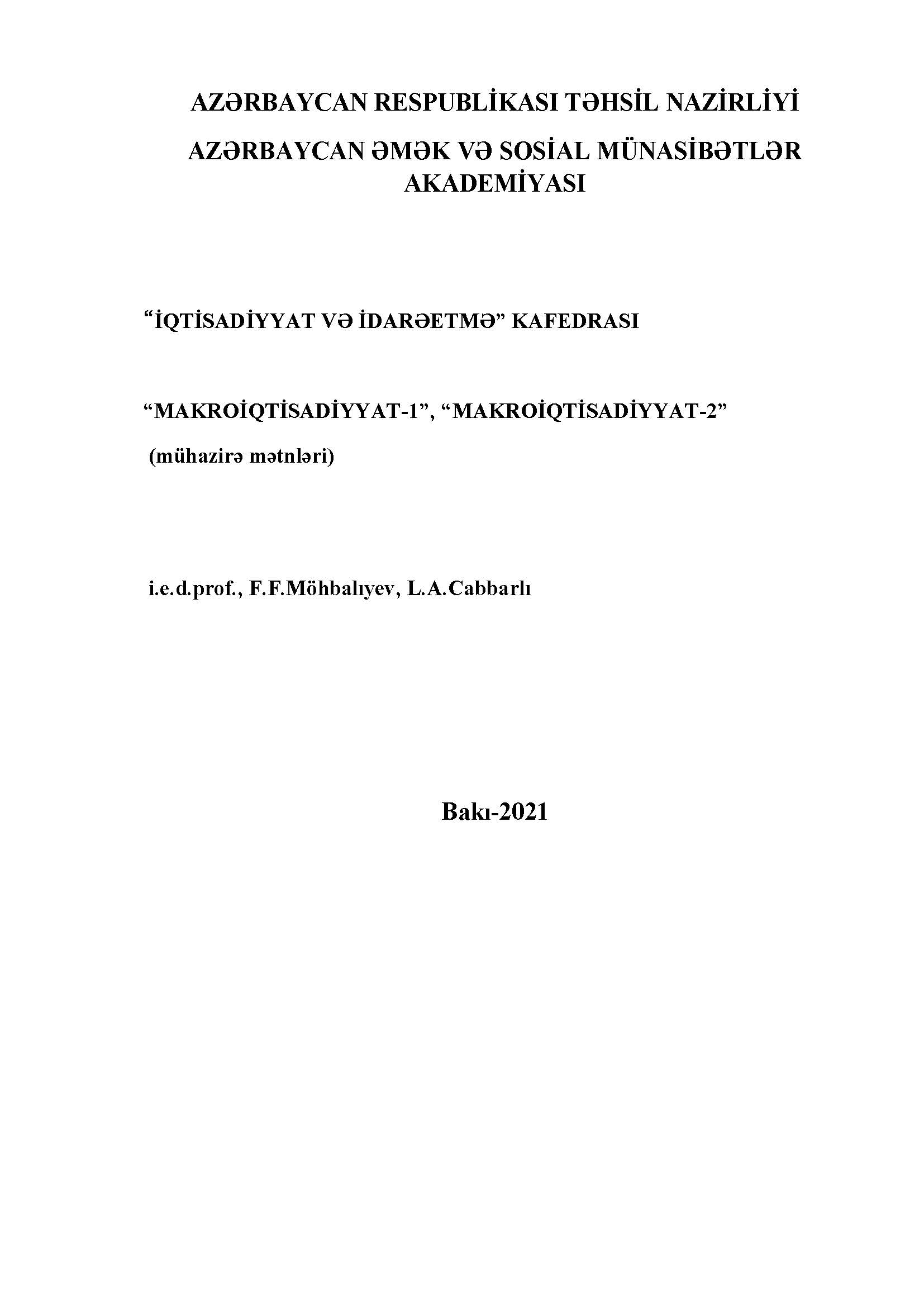 MAKROİQTİSADİYYAT-1, MAKROİQTİSADİYYAT-2